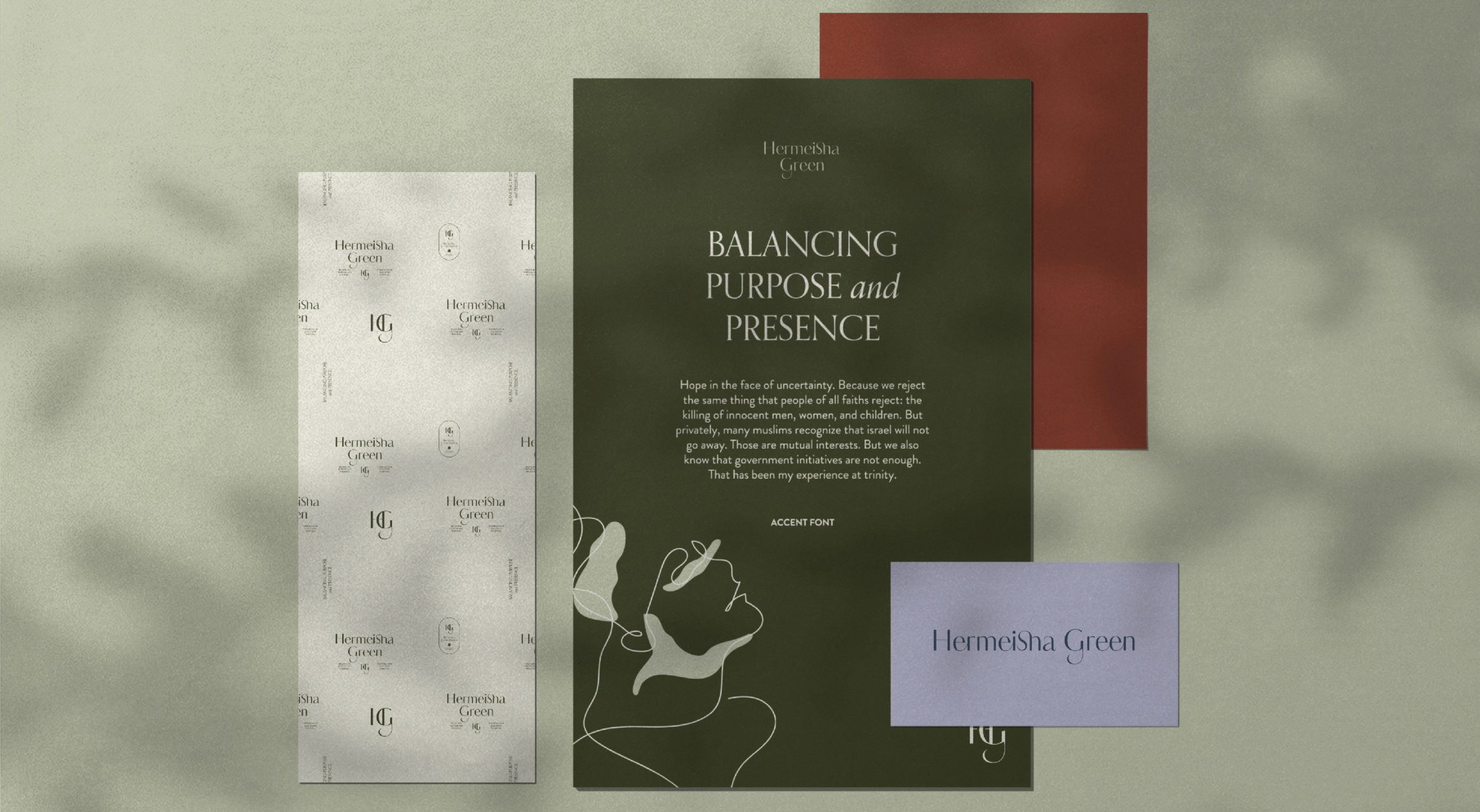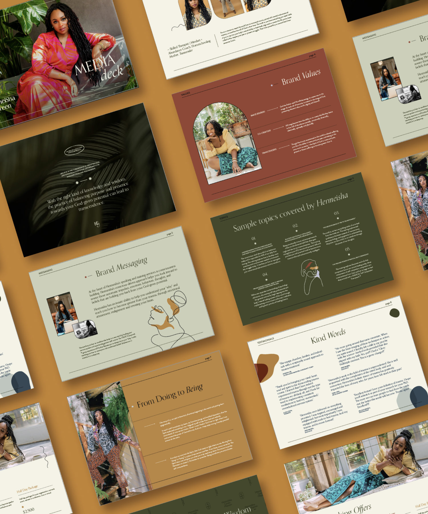 With this brand we wanted to tap into feminine energy and what makes women naturally powerful and abundant somewhat transcendent. Hermeisha herself exudes that same energy. We created a brand which feels balanced and lively, a color palette fueled with intuition and wisdom, a logo suite and font pairings that convey strength and elegance.